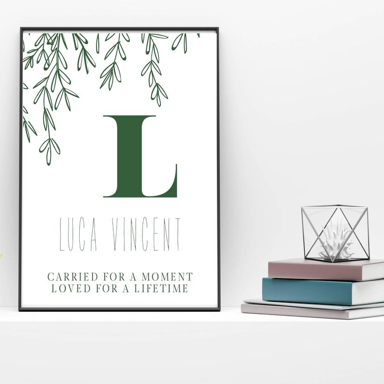 Rosalie Grace’s Garden creates custom and printable digital wall art for all forms of infant loss. These items can be put up in your home to remind you of your baby and their place in your family.