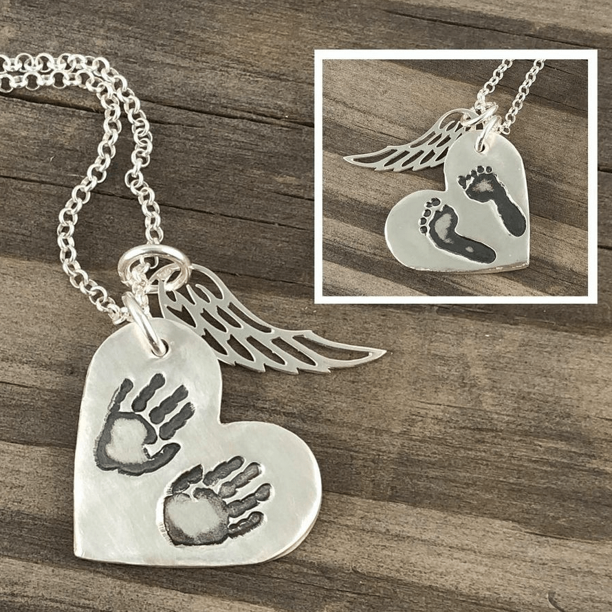 Silver Soul Creations works with families to create custom jewelry and keepsakes using hand and footprints, fingerprints, and drawings. These pieces can be worn or carried to help remember loved ones.